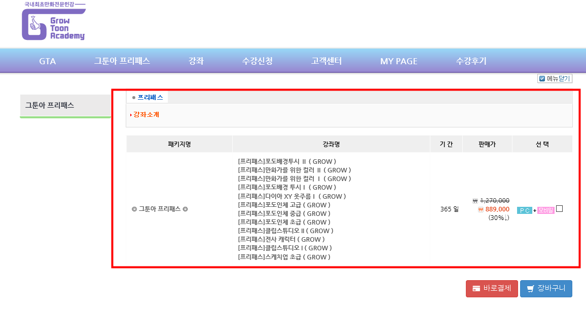 그툰아 1년 프리패스 정기권 수강신청 바로가기